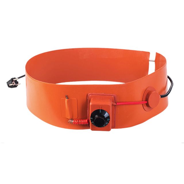 Нагреватель NPS-750W-100LM для 100 литровых бочек имеет форму пояса, изготавливается из силиконового каучука усиленного тканью из стекловолокна.