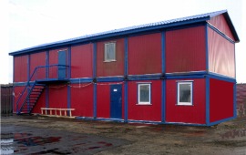 На первом этаже расположены жилые помещения для размещения сотрудников, на втором – рабочие кабинеты для руководства. Вход на второй этаж осуществляется по пристроенной внешней лестнице. Также на втором этаже имеются два туалета.