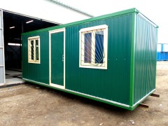 Каркас постройки имеет металлическое основание с металлической обвязкой. Крыша офисной бытовки покрыта гладкими металлическими листами с антикоррозийным покрытием и толщиной 2 мм.