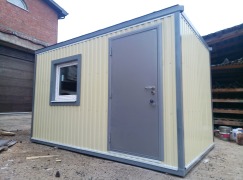 При въезде на охраняемый объект должен располагаться оборудованный соответствующим образом контрольный пропускной пункт (КПП). Сегодня нет нужды заниматься строительством стационарного сооружения, либо использовать для организации КПП приспособленное помещение. Заказав специальную утепленную бытовку, вы получите готовый КПП, который можно вводить в эксплуатацию сразу же после его оперативной сборки. Размеры бытовки составляют 4х2,5 м, что позволяет разместить внутри все необходимое оборудование и предметы мебели (техническое обеспечение системы наблюдения, стол, стул и др.). Окна оснащены пластиковыми стеклопакетами. Бытовка утеплена минеральной плитой (50 мм). Надежная металлическая дверь также утеплена. Снаружи КПП отделан оцинкованным профлистом или профлистом с полимерным покрытием (цветовое решение на усмотрение заказчика). Это придает сооружению аккуратный и строгий вид в соответствии с функциональным назначением КПП. Внутри бытовка отделана влагостойким ДВП ламинированным пленкой под дерево. Полы в черновом варианте. Подходит для круглогодичного использования в городской и сельской местности, на различных объектах.