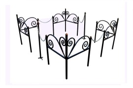 "Угол" размер 0,65*0,65 - 1200 Руб. Стойки 25*25 - 150 Руб. Цепь длина 0,58 - 100 Руб. (Преимущество ограды в том,что за счёт допольнительных стоек и цепей,можно изменить размер и проход)