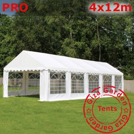 Шатер 4x12м в комплекте с 2-мя боковыми стенками и с 12-ю стенками с ПВХ окнами размером 97х115см.