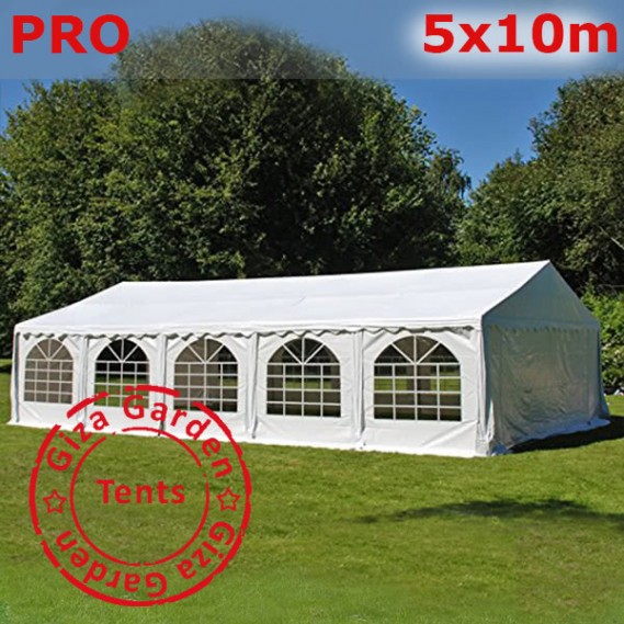 Шатер 5x10м в комплекте с 2-мя боковыми стенками ПВХ окнами размером 97х115см.