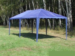 Беседка шатер отличается не только размерами, от схожих укрывающих конструкций, но и прямоугольной формой. Размером 5х2,5 метра, такая беседка будет достаточно вместительна, но, и в тоже время, вполне компактна. Каркас беседки представляет собой металлические трубки, что позволяет надежно установить ее, имея гарантию о ее стойкости. Возможность установки москитных сеток, гарантирует, что циркуляция воздуха будет постоянной, как и защита от насекомых. А, достаточно нейтральный, внешний вид дает возможность использовать ее вне зависимости от направленности мероприятия.