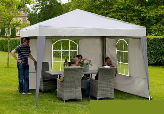 Павильон тент-шатер это отдельный вид укрывающих шатров. В первую очередь, такой шатер будет выигрывать как прекрасное дополнение дизайну, в котором выполнен двор. Каркас беседки выполнен из металлических труб, и он позволяет надежно установить шатер, давая гарантию, что ни порывы ветра, ни непогода не повлияют на его стойкость. Прилагаемые же москитные сетки дают уверенность, что циркуляция воздуха будет постоянной, как и защита от насекомых.