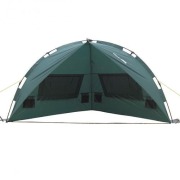 Внешние габариты такого тента составляют 310х160х150 см, зато в упаковке размеры весьма малы: 90х15х15 см. Всесезонный тент выполнен из лёгкого и прочного материала 75D POLYESTER TAFFETA185T PU1000MM, в котором все швы проварены. Цвет этой палатки – зелёный.