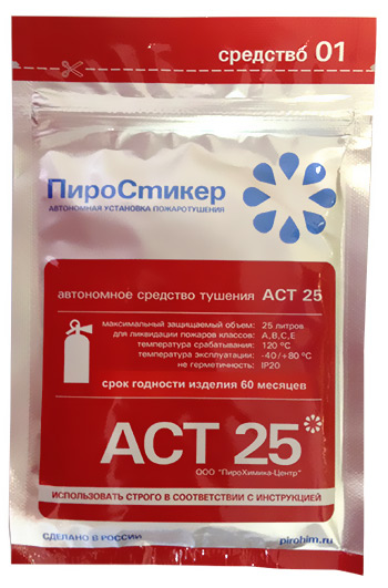 ПироСтикер ACT 25 - принципиально новое средство огнетушения, разработанное специально для защиты от возгораний в малогабаритных объектах, таких как: распределительные щиты, электрошкафы, сейфы и др.