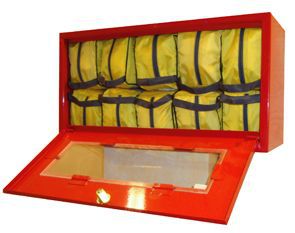 В комплекте 2 ключа, самозатягивающаяся пластиковая пломба, 2 наклейки «Место выдачи СИЗ» и порядок надевания самоспасателя Габаритные размеры: ширина - 570 мм., высота - 300 мм., глубина - 200 мм., вес - 4,5 кг.