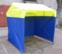 Торговая палатка «кабриолет» размером 1,5 на 1,5 метра - нестандартна. Она представляет собой мобильную разборную конструкцию, состоящую из растянутых на каркасе тентов, возможных к надежному скреплению между собой трубами. Небольшие размеры играют на руку мобильности. Также, такая палатка очень удобна в использовании, и ее мобильность только повышает ее популярность среди схожих товаров.