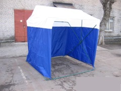 Палатка очень удобна и функциональна. Это обеспечивается, благодаря тентовому материалу, который абсолютно влагонепроницаем, и способен защитить от ветра. Ввиду этого же материала, палатка устойчива к погодным условиям, она надежна, полностью защищает товар, и работающего в ней человека, как от знойной жары, так и от дождя или снегопада. Передняя часть полностью открыта, что позволяет покупателям получать полный доступ к ассортименту товаров, которые могут находиться в палатке.
